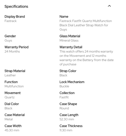 Fastrack NS3227SL01 Fastfit Quartz Multifunction Black Dial Leather Strap Watch | MNK SHOP