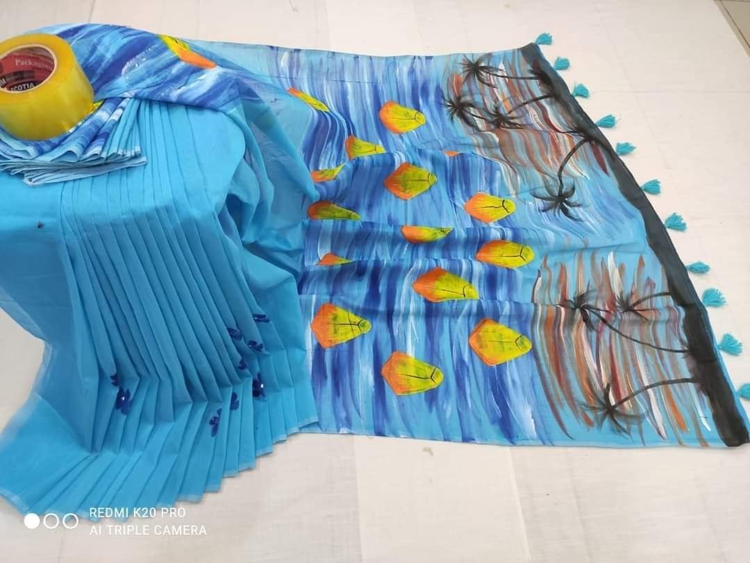 Home Women's Fashion Saree Hand Print Silk Saree হাফসিল্ক শাড়ীতে হ্যান্ডপ্রিন্ট তুলির কাজ করা