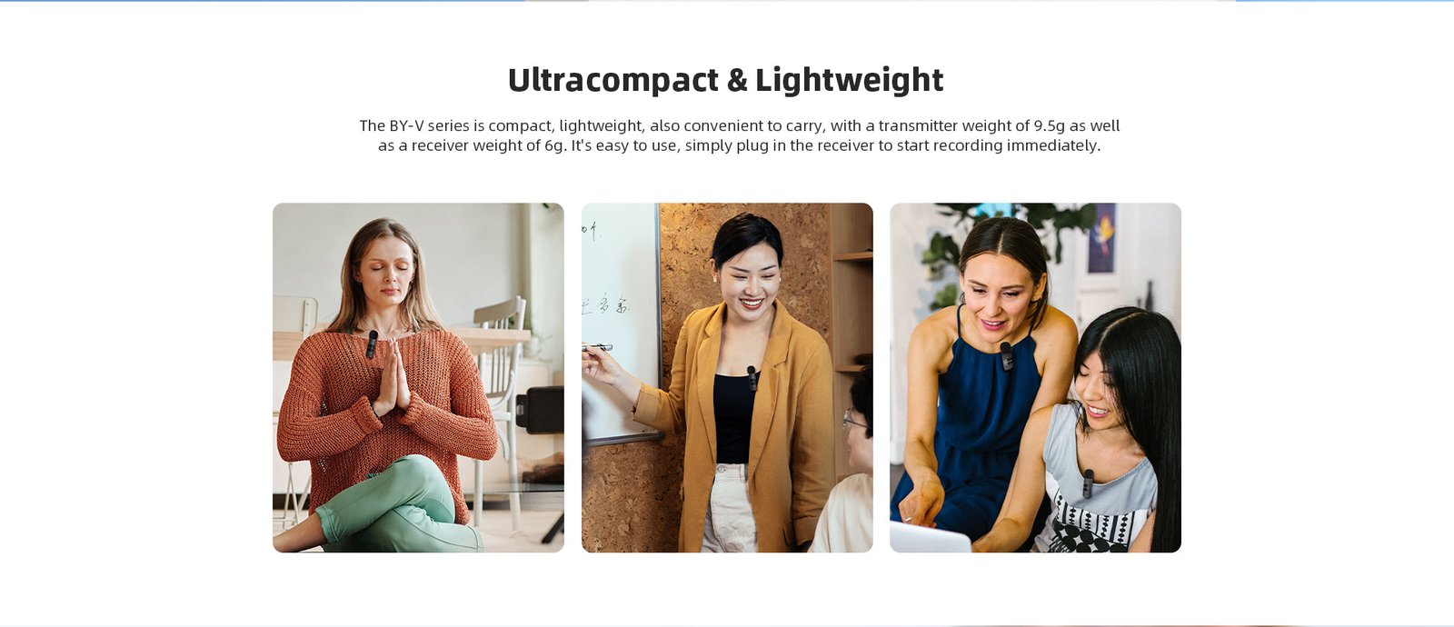 The BY-V series is a professional-grade wireless microphone system ideal for on-the-go recording, whether you;re traveling, recording podcasts, or doing live streams. The BY-V20, designed for most Android devices with USB-C ports, is a dual-channel wireless system that comes with 2 transmitters & 1 receiver. It offers a high-quality audio solution at an affordable price, making it accessible to a wider range of users.