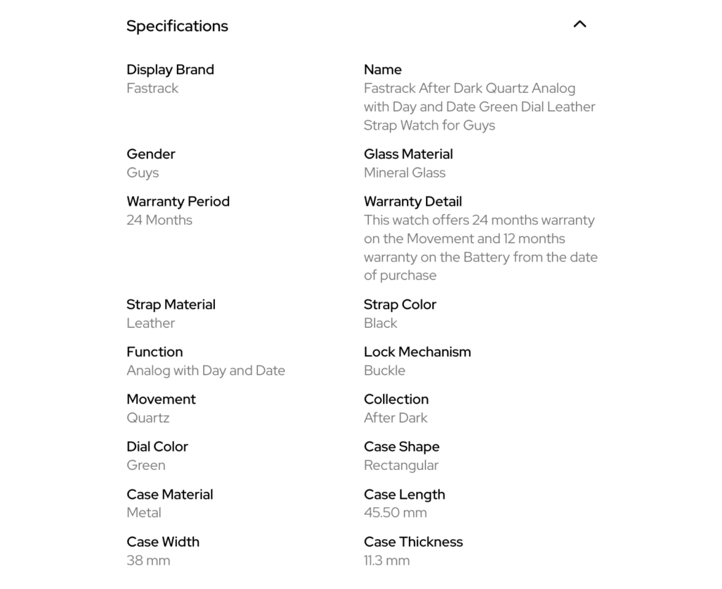 • Warranty: This watch offers 24 months warranty on the Machine and 12 months warranty on the Battery from the date of purchase