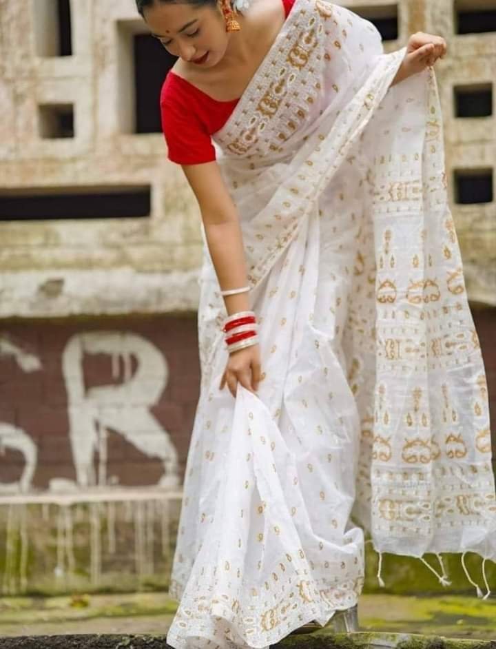 হাফসিল্ক শাড়ীতে স্কিনপ্রিন্ট কাজ করা
