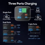 • USB-C1 + USB-C2 + USB-A: 100W + 15W
